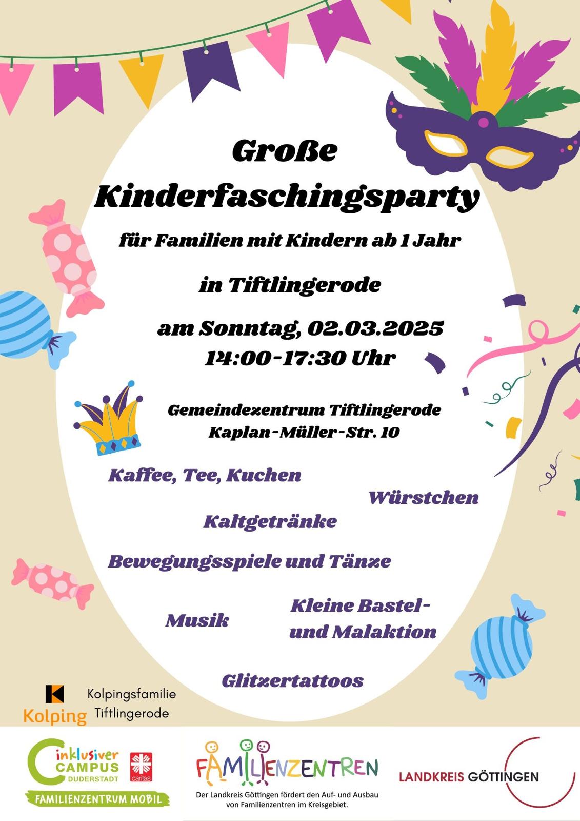 Kinderfaschingsparty am 2.3.2025 In Kinder, Veranstaltung Abgeschlossenes Event Datum 2. März 2025 Uhrzeit 14:00 - 17:30